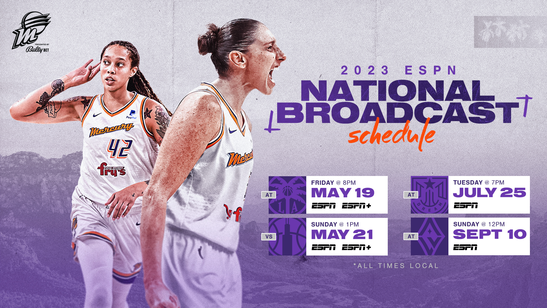 PHOENIX MERCURY ANNOUNCE ESPN NATIONAL BROADCAST SCHEDULE